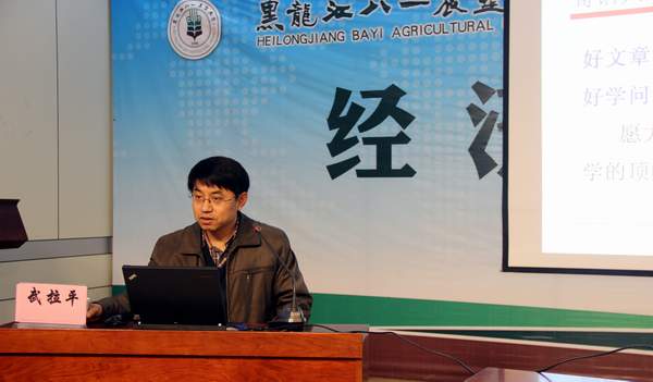 12月25日,沈阳农业大学张广胜教授受邀来到校进行学术交流,张广胜教授沈阳农业大学经管学院教授、博士生导师,农林经济管理博士学位授权一级学科带头人,辽宁省重点学科——农业经济管理学科带头人。主持国家自然科学基金项目4项(70303004、70773077、70973082、71273179)、国家社会科学基金项目1项(02CJL002),其他省部级课题10余项。