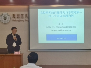 报告会上,唐忠教授结合农业农村社会现象深入浅出地将经济学理论分析思维融入其中,以创新角度系统性对当今土地制度改革、光盘行动与节约粮食等热点农业经济问题进行分析、推理。此次学术报告为师生如何系统研究农业经济实际问题提供了全新思路。讲座过后,唐忠教授与参会师生进行了问答交流,并就学术研究热点、研究思路与方法等师生关心的问题进行解答。