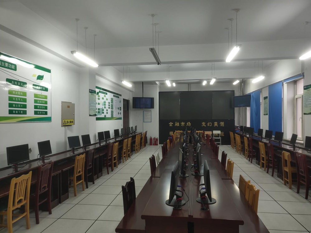 金融模拟实验室是建立在对现代金融市场高度仿真的模拟系统之上,为学生提供一个进行模拟金融实践平台的现代化金融模拟实验室。实验室与上海敏学公司开展产学研合作,配有“钱龙”金融教学软件。整个系统采用专业金融市场真实使用的行情分析系统,提供和交易所同步的实时行情,以及海量的财经资讯,还有上万种投资分析技术指标,大赛交易系统采用与交易所一致的交易规则,同时整合了目前高校最前沿的教学需求。