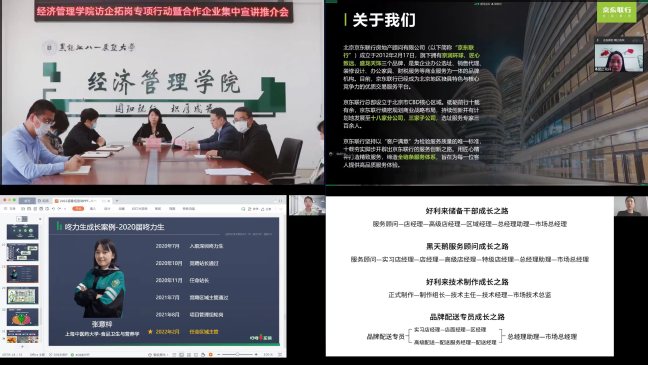 本次会议邀请的北京京东联行房地产顾问有限公司、上海叮咚买菜、北京好利来集团三家公司均为行业领域的领军企业和龙头企业,通过详细的企业介绍、岗位解读,让毕业生们清晰了解企业文化、培养模式及员工福利待遇,吸引他们尽快地加入企业阵营。