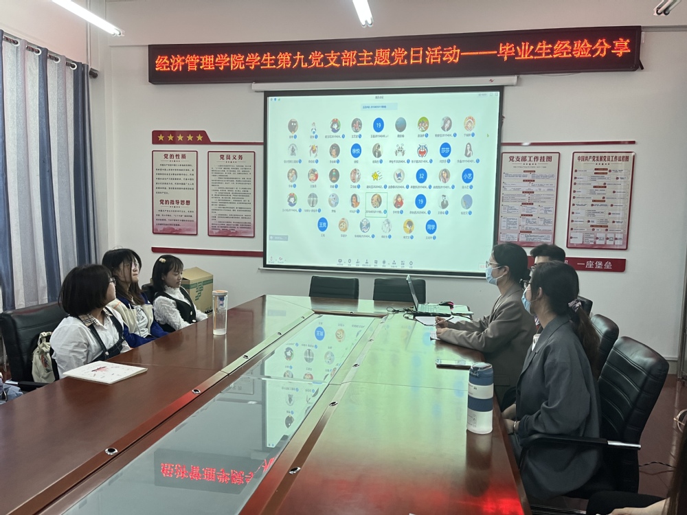5月19日,我院学生第九党支部组织开展毕业生经验分享主题党日活动,本次活动采取线上线下相结合的方式,邀请留学申研学生代表王雅琦、研究生支教团成员高旺生、就业先锋陈楼作为主讲人,支部全体党员和积极分子参加。