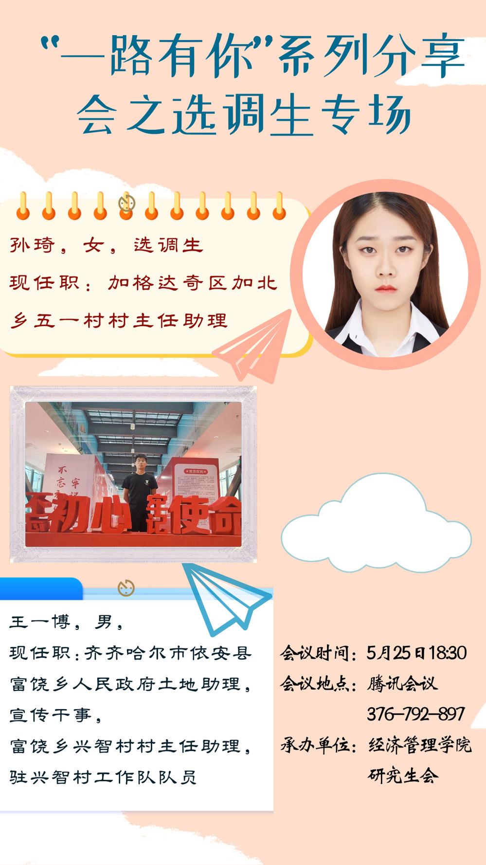 学院充分发挥朋辈引领作用,特邀陈雅文、郭晶晶、焦亚楠做“研”途分享,邀请就业先锋陈楼、于金冉、周悦做求职分享。他们将考研与求职过程中遇到的困难、走过的弯路、学到的技巧进行分享,以“朋辈”的感同身受来“职”引大家做好规划,帮助即将就业学子消除了诸多在毕业去向和考公考研等方面的疑惑,使得同学们进一步了解了如何选择不同行业和岗位,掌握了考公考研方面的笔试面试技巧,进一步掌握了在求学道路上的心态调节方法,对未来的备考准备和求职方向也有了更加清晰明确的计划。