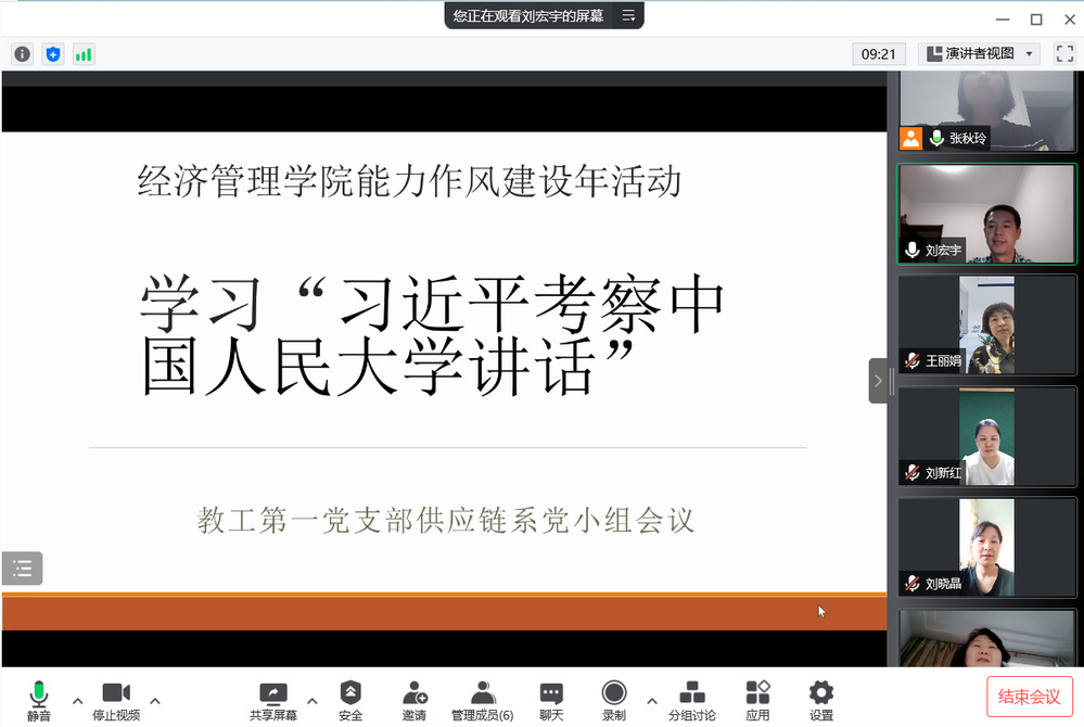 5月25日至27日,学院教工第一党支部采取党小组会形式,开展能力作风建设专学习活动,供应链管理系、人力系、营销系三个党小组通过线上线下相结合的形式,集中学习了《习近平总书记给北京科技大学老教授回信》《习近平在中国人民大学考察:坚持党的领导传承红色基因扎根中国大地走出一条建设中国特色世界一流大学新路》《黑龙江省第十三次党代会报告》等内容。
