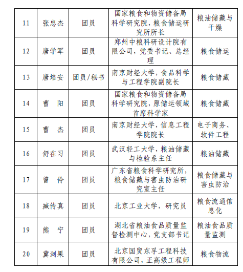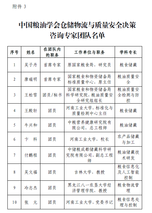 2022年7月12日,中国科协办公厅发布了《中国科协办公厅关于公布2022年决策咨询专家团队建设试点单位的通知》(科协办函智字〔2022〕72号),公布了中国科协2022年决策咨询专家团队建设试点单位名单,据通知,全国共有50家单位获批中国科协2022年决策咨询专家团队建设试点单位,中国粮油学会是其中之一,获批“中国粮油学会粮油加工与营养健康决策咨询专家团队”“中国粮油学会仓储物流与质量安全决策咨询专家团队”,我校冷志杰教授入选中国粮油学会仓储物流与质量安全决策咨询专家团队。旨在深耕粮油储藏、物流管理及质量安全专业领域,把藏粮于地、藏粮于技落到实处,为推动我国粮油产业转型升级和高质量发展积极建言献策。