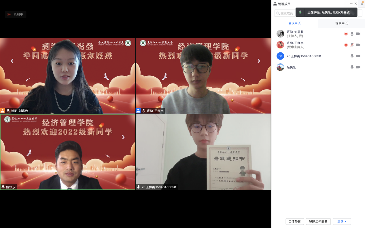 9月3日上午8时,金沙集团1862cc成色16个班级的新生入学报到工作通过腾讯会议准时开始,新生班主任、班级助理三人一组,与新生亲切交流,通过视频仔细核验录取通知书、准考证、身份证,耐心询问新生基本情况,准确登记掌握新生身份信息,叮嘱同学们疫情期间做好个人防护,积极参加新生入学教育,认真对待线上教学,遇到问题及时与老师沟通,用真诚负责的态度、贴心周到的服务温暖新生,给新同学们留下了农大经管人最美好的第一印象。