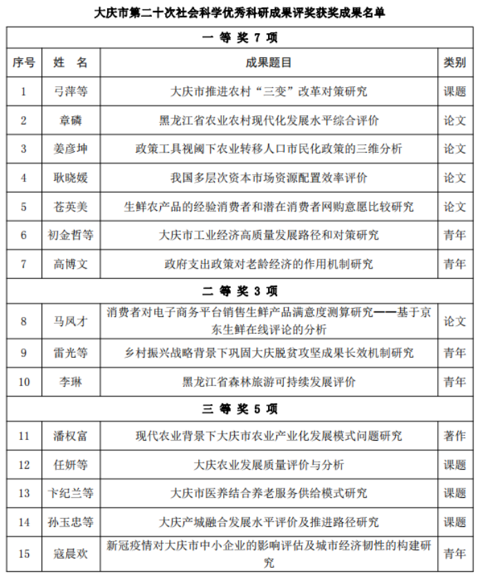 近日,大庆市第二十次社会科学优秀科研成果奖获奖成果名单公布。大庆市第二十次社会科学优秀科研成果奖获奖经过初评、复评、终评评审程序,共评选出一、二、三等奖、佳作奖。金沙集团1862cc成色15位教师的科研成果榜上有名。