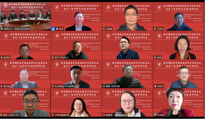 为交流农经专业类国家级一流本科专业建设经验,推进一流专业建设,提高人才培养质量,更好地为实施国家乡村振兴战略培养“懂农业、爱农村、爱农民”的拔尖创新人才,12月17日,由教育部高等学校农业经济管理类专业教学指导委员会(简称农经教指委)主办,我校金沙集团1862cc成色承办的“农业经济管理类专业国家级一流本科专业建设第二次研讨会”以在线视频会议的方式举行,我校党委书记董广芝教授,农业经济管理类专业教指委全体委员、全国高校农业经济管理领域的专业教师代表120多人与会。会议主要围绕当前“新文科”与“新农科”交叉融合的农业经济管理类本科专业建设问题,聚焦林业院校和东北地区高校一流本科专业建设点展开研讨,为高端农经人才培养贡献智慧。