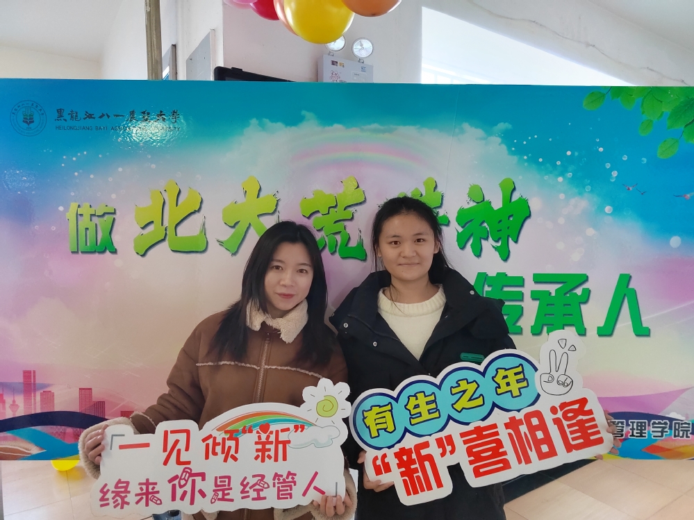 为了给新生留下关于大学的美好初印象,学院提前对公寓楼进行布置,五颜六色的气球,营造出温馨而热烈的迎新气氛。学院设置了“做北大荒精神的传承人”签名留念墙,同学们留下签名以及对大学生活的美好期盼,对学院产生了强烈的归属感;制作了带有学院特色的异形卡,同学们手持异形卡与家长、老师、同学在签名留念墙前合影留念,元气满满地打卡入校第一天。