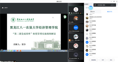 梁净老师结合自身工作专项,为同学们详细介绍了学院分团委情况、第二课堂制度管理实施细则及综合素质考评内容。在梁老师的介绍中,学生们充分掌握学院架构,了解学院现有的学生组织及社团情况。同时对于大学四年中必不可少的“第二课堂”实践内容有了充分的了解。梁老师悉心地提醒学生应给予“第一课堂”和“第二课堂”同样的重视,为日后自身综合素质考评奠定基础。