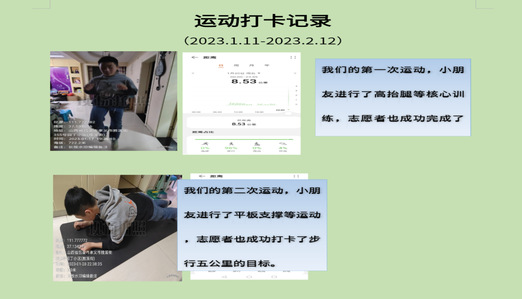 本次活动历时30余天,共招募来自不同年级不同专业的志愿者43名,他们以“一对一”形式与中小学生进行线上对接,共同完成“一起快乐阅读”、“一起健康运动”、“一起云课堂”、“寻访伟大成就,争当时代新人”四个板块的活动,陪伴孩子们度过一个温馨、多彩的假期,充分展示新时代新青年志愿者的精神风貌。接下来,让我们来看看他们的风采和活力!
