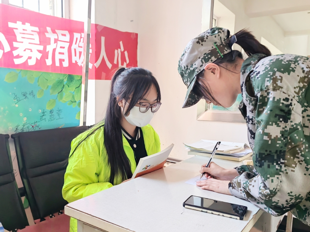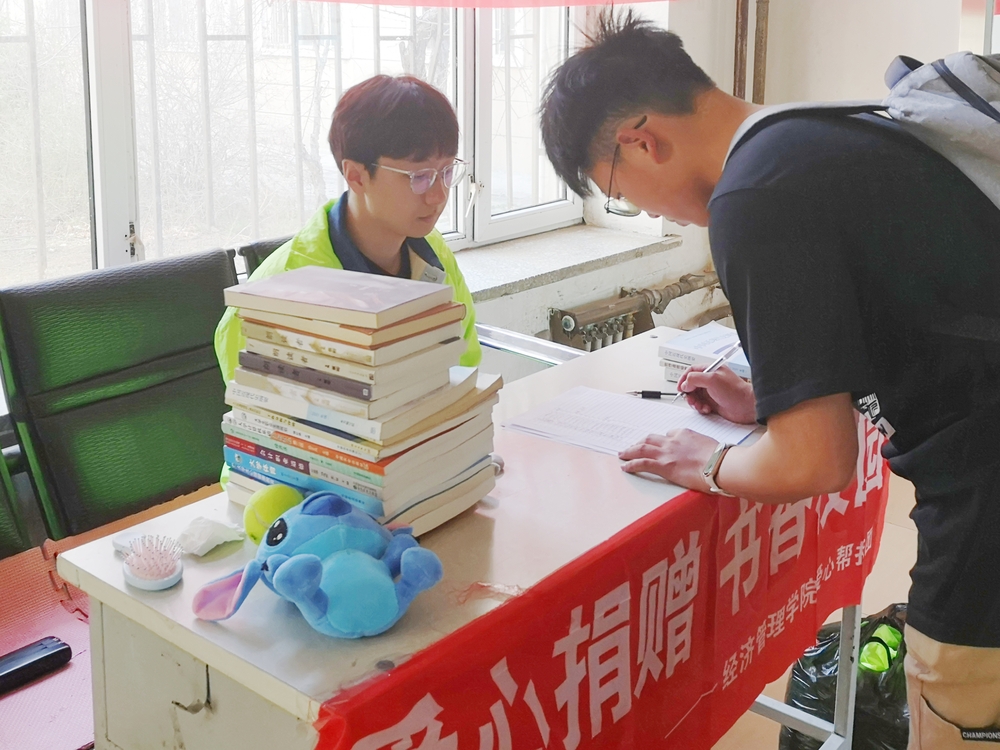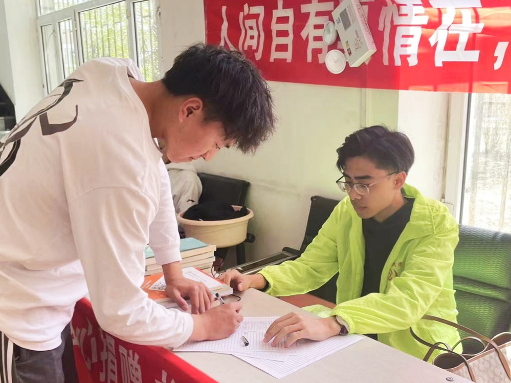 活动现场,志愿者们分工明确、各司其职,有序组织同学们完成捐赠。