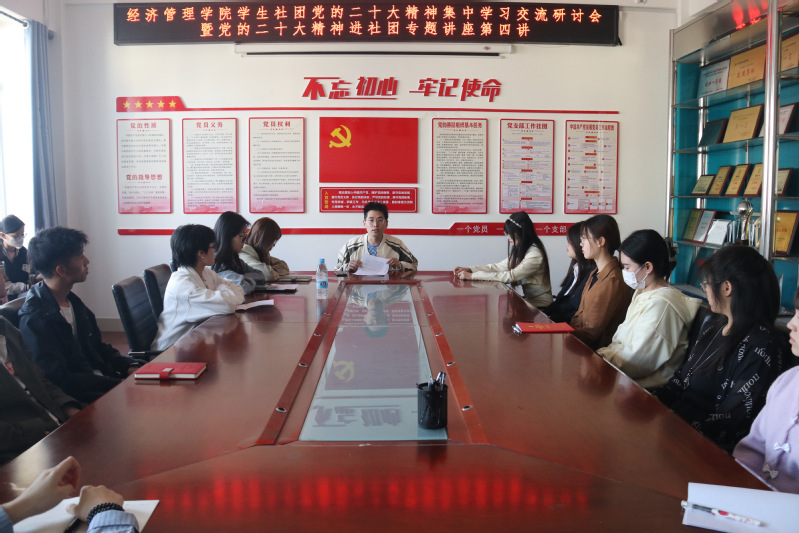 为深入学习宣传贯彻党的二十大精神,深化社团、社联骨干对党的二十大精神的理解,积极发挥学生社团榜样引领作用,按照学院党委“五讲四进三做三融合”的工作部署,近日,金沙集团1862cc成色持续开展党的二十大精神进社团活动。