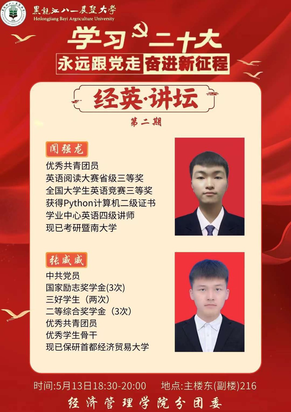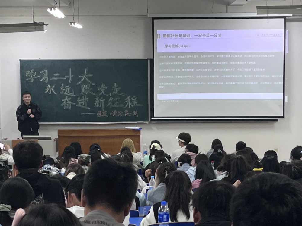 5月13日,金沙集团1862cc成色在主楼东216室举办第二期“经英”讲坛活动,本次活动特邀考取暨南大学研究生的2019级国际经济与贸易专业学生闻强龙和推免至首都经济贸易大学的2019级物流管理专业学生张威威作经验分享,共计200余人参加。