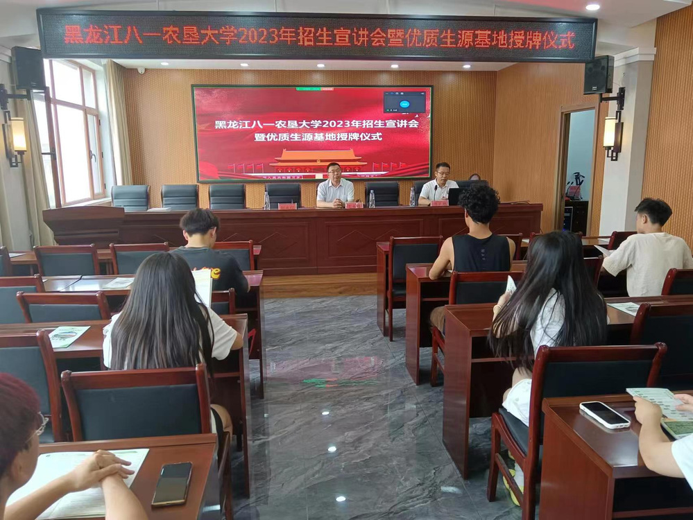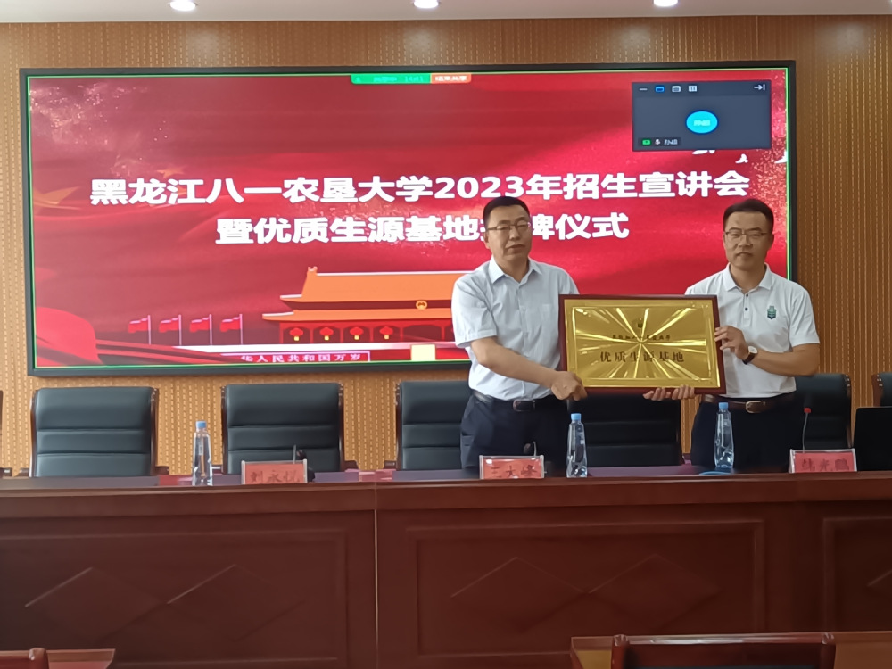 7月2日,副院长韩光鹤、物流管理系主任刘永悦赴绥化市区开展招生宣传。绥化市第九中学校长王大峰参加会议,从韩光鹤手中接过授予的牌匾。韩光鹤围绕学校历史沿革、办学规模、学科专业特色、师资队伍、科学研究、国际交流、招生政策等内容进行了阐述,并以线上线下相结合的方式为现场和网络上的考生和家长进行了答疑。