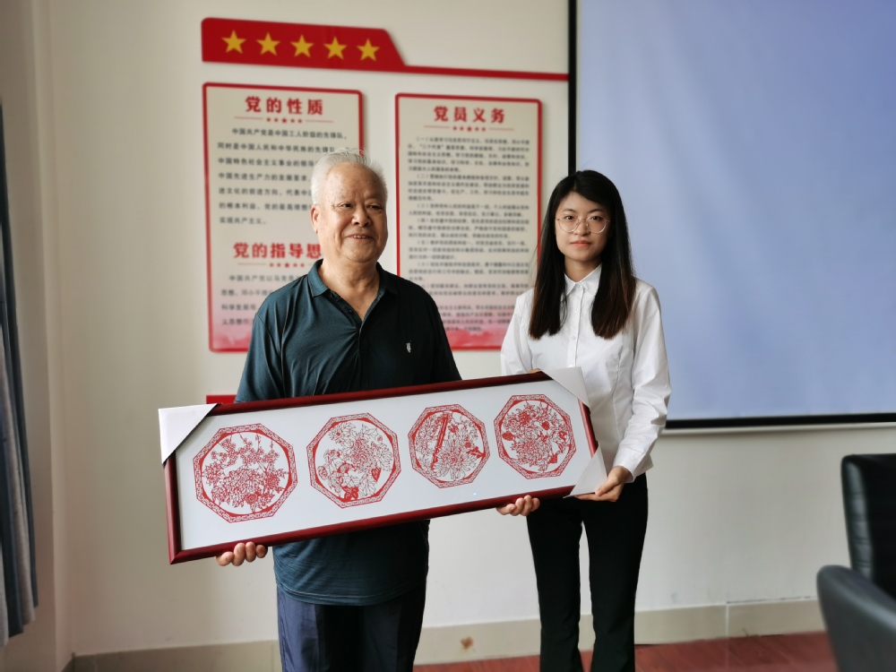 在“青丝传银发”环节中,2021级邹依芮、2022级任雨航、2022级高惠乔三位同学围绕党的二十大报告,为王玉芳老人进行了生动的讲解。在“银发带青丝”环节中,王玉芳老人结合自身实际,回顾学校建校史、发展史,以自身职业经历为脉络,带领同学们感受学校发展、社会变迁,将老党员的人生经历转化成鲜活的学习教材,鼓励青年学生勇担使命,踔厉奋发。活动最后,同学们为王玉芳老人送上精心准备的手工剪纸作为礼物,让老人感受到浓浓的温馨和关怀。