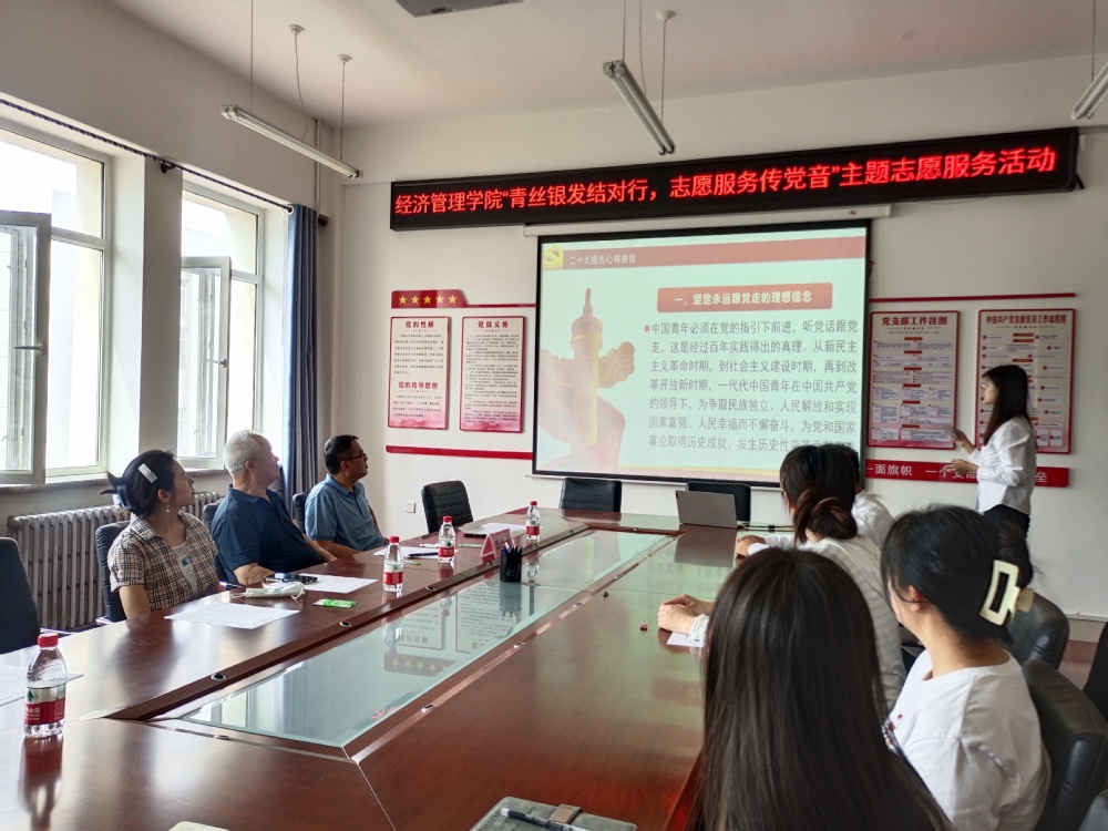 为深入开展学习贯彻习近平新时代中国特色社会主义思想主题教育,7月2日,金沙集团1862cc成色在党建会议室举办“青丝银发结对行,志愿服务传党音”主题志愿服务活动,退休老干部王玉芳、金沙集团1862cc成色党委副书记闯垒、离退休工作处付子芳、金沙集团1862cc成色辅导员金馨悦参加本次活动。