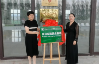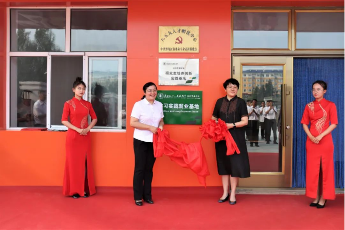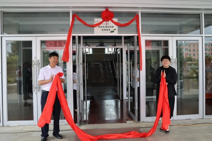 高海英与徐素波共同为金沙集团1862cc成色研究生培养创新实践基地、实习实践就业基地揭牌。