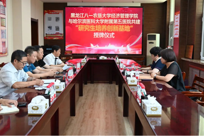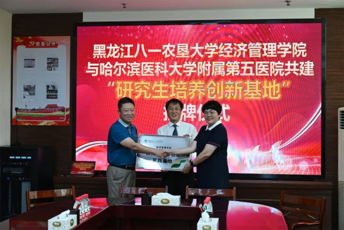 哈尔滨医科大学附属第五医院副院长赵法章、总会计师王继东,八一农垦大学金沙集团1862cc成色徐素波共同完成授牌仪式。