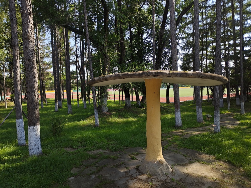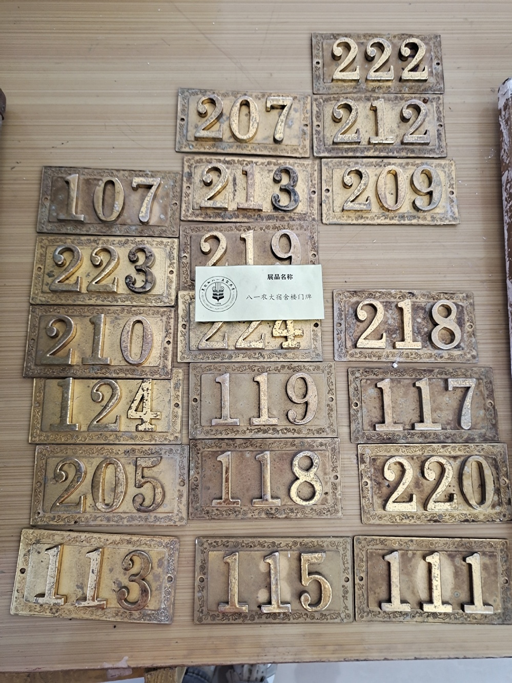 实践团队第一站来到了位于裴德镇的八一农大老校区,老校址如今已建为牡丹江管理局高级中学,在牡局高中蔡校长的带领下,团队成员先后参观了校史馆以及教学主楼、农学楼、图书馆等旧址,途中既可见到具有年代感的“蘑菇亭”,也可见到两至三人方可环抱的参天大树。校史馆中陈列着许多“老物件”,有学生宿舍的门牌、柜子以及老式钟表、收音机等,讲解老师围绕学校设施建设发展、学科专业设置调整、招生趋势变化、优秀教师代表等多个方面展开详细讲解。实践团队成员走过、看过、听过学校发展历程,感受学校六十余载岁月的变化,体会八一农大深厚的文化底蕴和优秀传统,增强爱校、敬校、荣校意识。