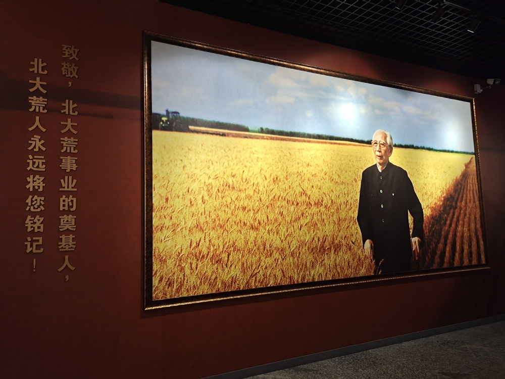 实践团队第三站来到了位于当壁镇的北大荒开发建设纪念馆,在王震将军雕像前,团队成员深刻缅怀王震将军开发建设北大荒的丰功伟绩,表达了对王震将军崇高的敬意。通过认真聆听讲解,团队成员深入了解从“北大荒”到“中华大粮仓”的艰辛耕耘历程,深刻感受北大荒现代化大农业的壮丽之美,对北大荒精神有了更加鲜明的认识。