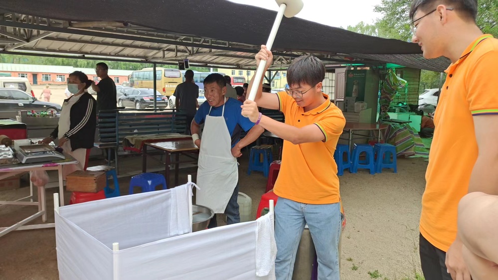 实践团队第四站来到了当地居民中间,对当地居民进行随机问卷调研访谈,了解当地居民对北大荒精神的内化理解情况以及当地乡村振兴的发展历程。调研过程中,团队成员积极开展劳动实践,通过黑土地上的实际劳作,感受劳动之美,共享劳动快乐。