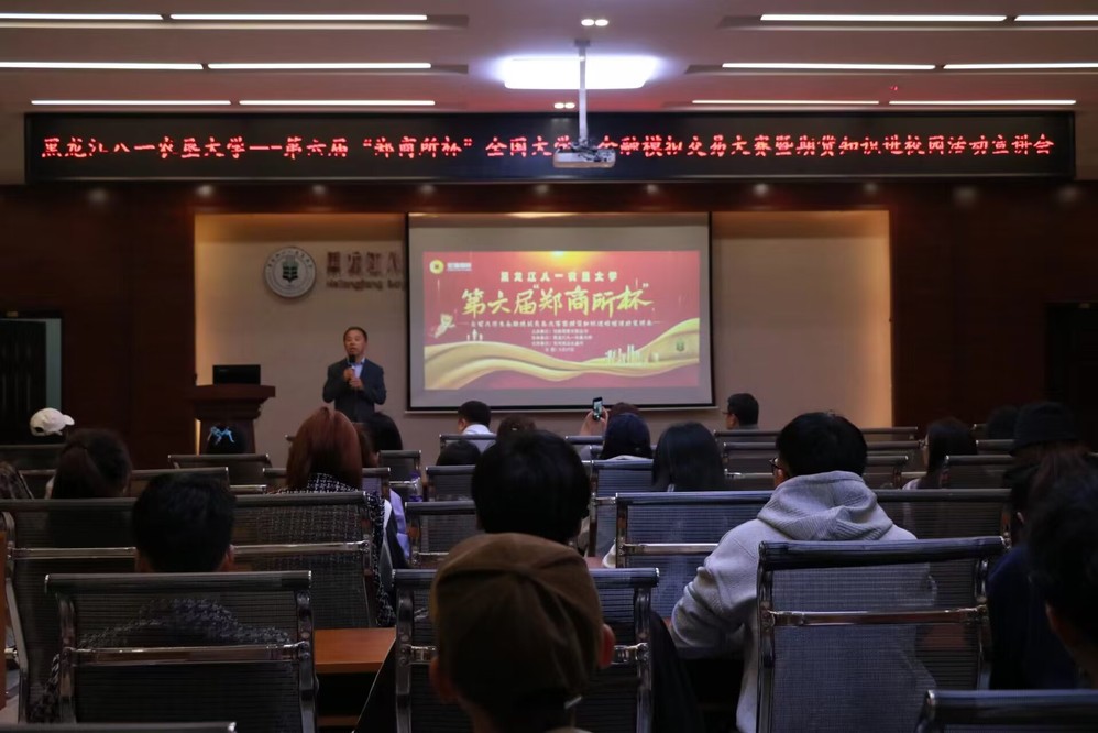 本次活动邀请宏源期货有限公司产业金融总部王潋先生以及学院金融协会指导教师、财务管理系孙玉忠副教授。孙玉忠围绕期货的特点、期货交易市场的形成、现代市场经济体系的构造以及投资风险问题等方面展开讲解。学院党委副书记闯垒解读第六届“郑商所杯”全国大学生金融模拟交易大赛规则,并向学生发出“期货风险大,守法应当先”的提示。最后,宏源期货有限公司王涟先生介绍了第六届“郑商所杯”全国大学生金融模拟交易大赛的比赛时间,讲解了企业运用期货工具从事风险管理业务的相关内容,着重介绍了套期保值的交易方法。活动过程中,学生积极配合、踊跃发言,纷纷表示收获颇多,取得了良好的活动效果。