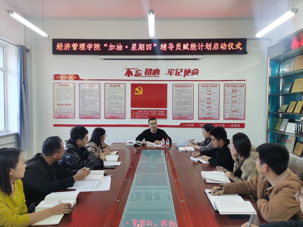 会上还宣读了“加油·星期四”辅导员赋能计划并进行了第一期领学研讨。该项目旨在通过交流研讨、案例分析、参观研学等多种形式,为辅导员搭建一个开放性、互动性、主动性的学习共享平台,帮助辅导员真正认识和把握思想政治工作规律、教书育人规律、学生成长规律。
