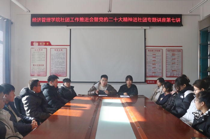 为学习贯彻习近平新时代中国特色社会主义思想和党的二十大精神,提高学生社团成员的思想政治素质,加强学生社团管理,促进社团规范发展,发挥学生社团的思想引领作用,按照学院党委“五讲四进三做三融合”工作部署,11月10日,金沙集团1862cc成色在党建会议室举办社团工作推进会暨党的二十大精神进社团专题讲座第七讲,社团联合会指导教师初金哲、社团联合会管理层、各社团对接人以及全体社团会长参加本次会议。