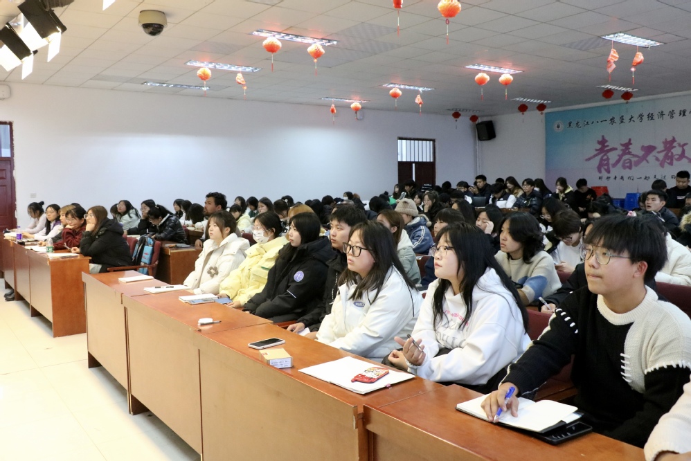 赵玥以“勇争先锋,敢当重任——努力成为学生想得起、找得到、靠得住的学生骨干”为题,围绕有站位、有格局、有细节、有作风四个方面,为第三期“经英”班作开班第一讲。赵玥结合自身工作经历,鼓励学生骨干树立远大理想,担当时代责任,勇于砥砺奋斗,与同学融为一体,在校园文化建设中起到组织作用,在学习和生活中起到模范与榜样作用。