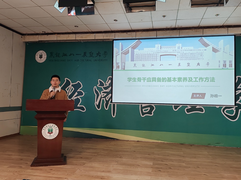 孙唯一以“学生骨干应具备的基本素养及工作方法”为题,结合实例围绕什么是学生骨干、为什么要做学生骨干、学生骨干应具备的素质、学生骨干工作能力提升四个方面展开培训,就“学生骨干能力作风建设”这一话题与学生骨干进行深入讨论和交流。