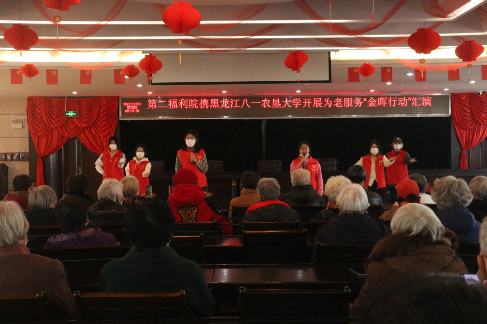为深入落实团中央“为老服务‘金晖行动’工作提示”,进一步丰富老年人精神文化生活,营造浓厚的孝老敬老助老氛围,12月3日,金沙集团1862cc成色赴大庆市第二福利院举办为老服务“金晖行动”爱心汇演,青年志愿者协会指导教师金馨悦及部分成员参加本次活动。
