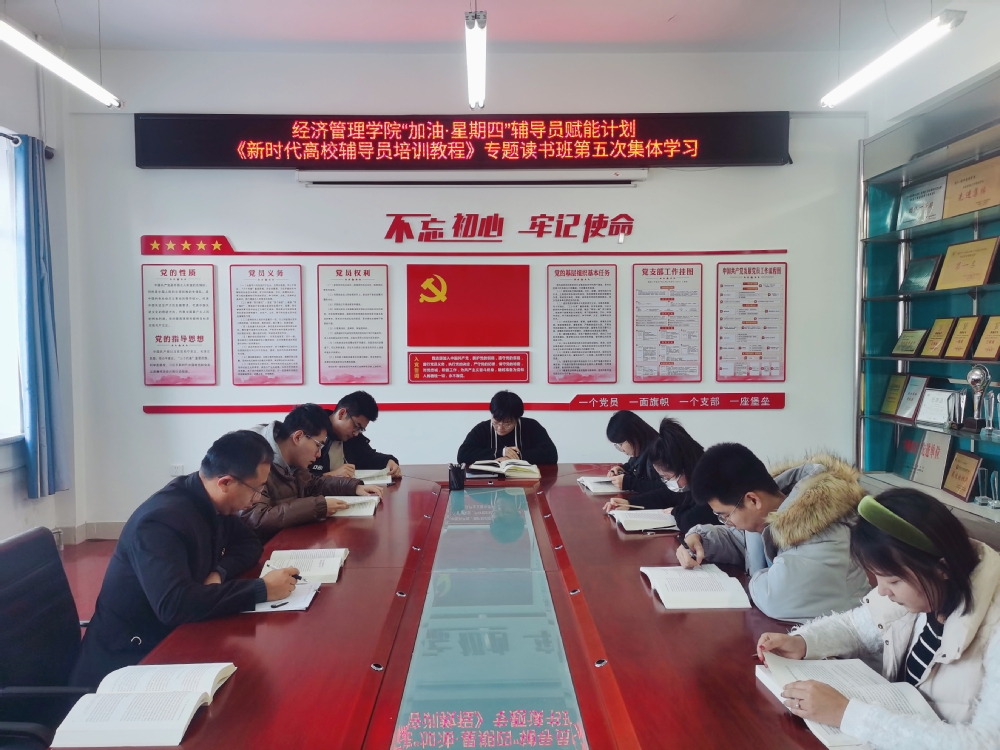 为切实加强辅导员队伍建设,提升辅导员理论素养、职业能力、专业素质,11月3日至12月7日,金沙集团1862cc成色举办“加油·星期四”辅导员赋能计划暨《新时代高校辅导员培训教程》专题读书班,累计组织学院全体辅导员开展集中学习6次、交流研讨1次。