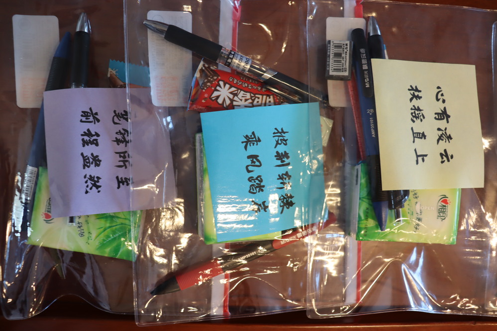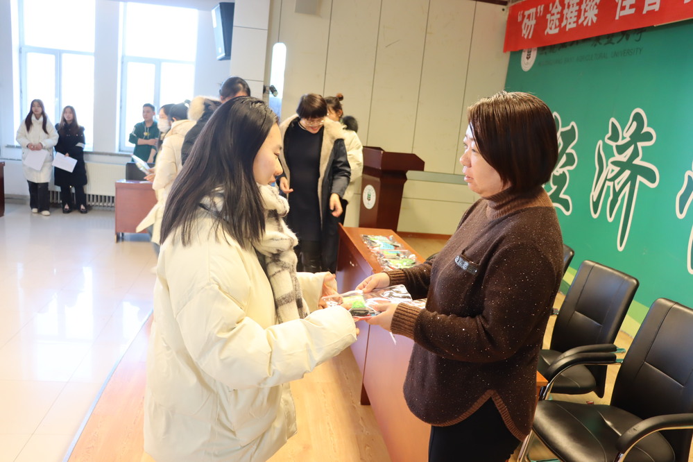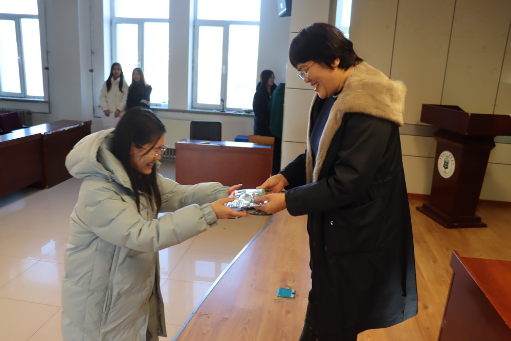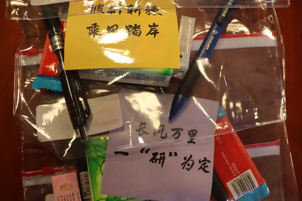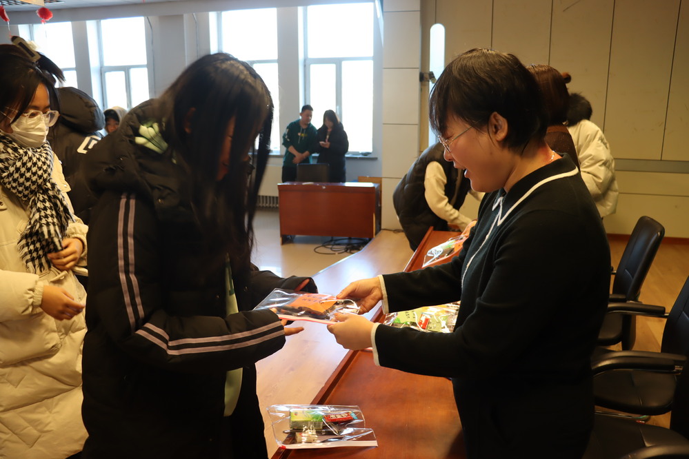 活动现场,学院领导和老师为考研学生发放了精心准备的“考研福袋”,文具寓意“文墨生花”,巧克力寓意“以‘力’破‘巧’”,手帕纸寓意“‘纸’定上岸”,每个福袋附带一张写着祝福语的彩色卡片,礼物虽轻,却传递着浓浓的人文关怀,希望考研学生带着满满的心意奋力冲刺、不留遗憾。