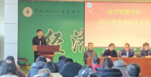 首先,院长徐素波作2023年度学院工作报告和2023年度学院财务工作报告,对学院过去一年工作取得的成果进行了回顾,并对学院未来规划进行了详细的讲解和说明。