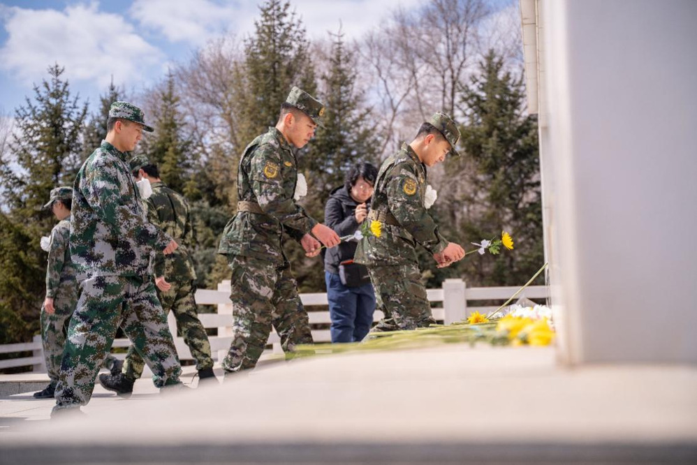退役大学生士兵面向国旗,举起右拳,重温军人誓词,高唱《中国人民解放军军歌》《强军战歌》,郑重承诺将继承先烈遗志、传承革命精神,以实际行动践行退伍不褪色、退役不退志的初心。同学们依次上前向革命先烈敬献鲜花,缓步绕行一周,瞻仰英烈纪念碑,寄托无限哀思和怀念。
