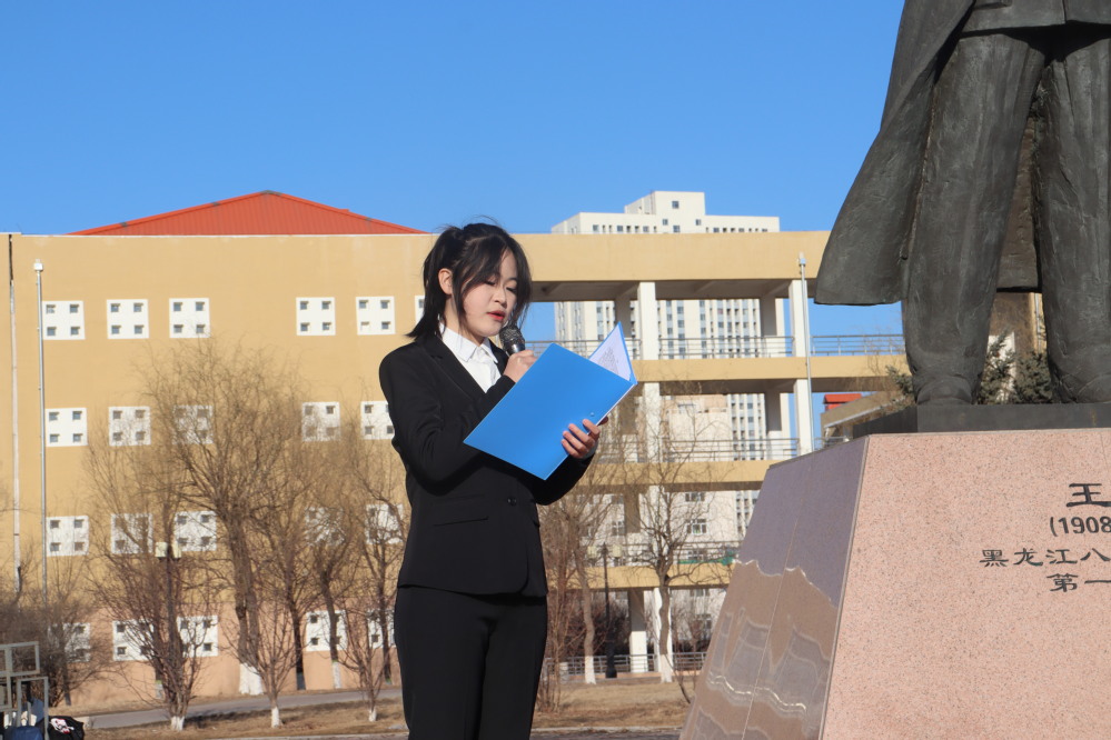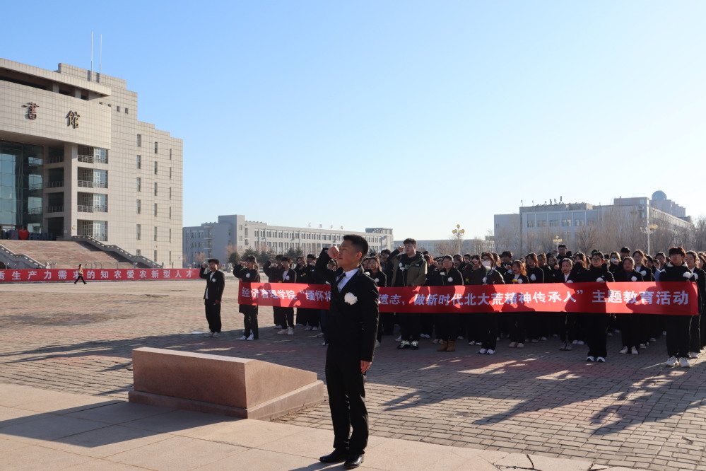 “致敬英烈,吾辈自强……艰苦奋斗,誓做栋梁”,退役大学生士兵杨添富带领同学们在王震将军像前庄严宣誓,一字一句掷地有声,同学们在铿锵誓言中提振使命担当,更加坚定做新时代北大荒精神传承人的信心和决心。