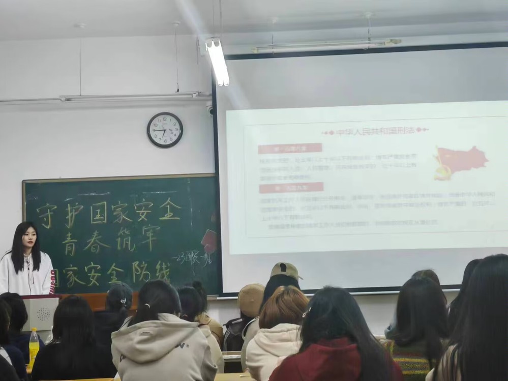 组织学院59个本科班级团支部开展“守护国家安全,青春筑牢国家安全防线”主题团日活动,组织学院12个党支部开展维护国家“五大安全”主题党日活动。通过主题党团日活动,组织师生集中学习习近平总书记关于总体国家安全观重要论述、《中华人民共和国国家安全法》、“千万师生同上一堂国家安全教育课”主题公开课、“国开大讲堂·国家安全教育公开课”等内容;组织团员青年就“我眼中的国家安全”“新时代大学生如何以实际行动维护国家安全”等相关主题展开交流研讨,使关心国家安全、维护国家安全成为团员青年的思想共识和行动自觉。