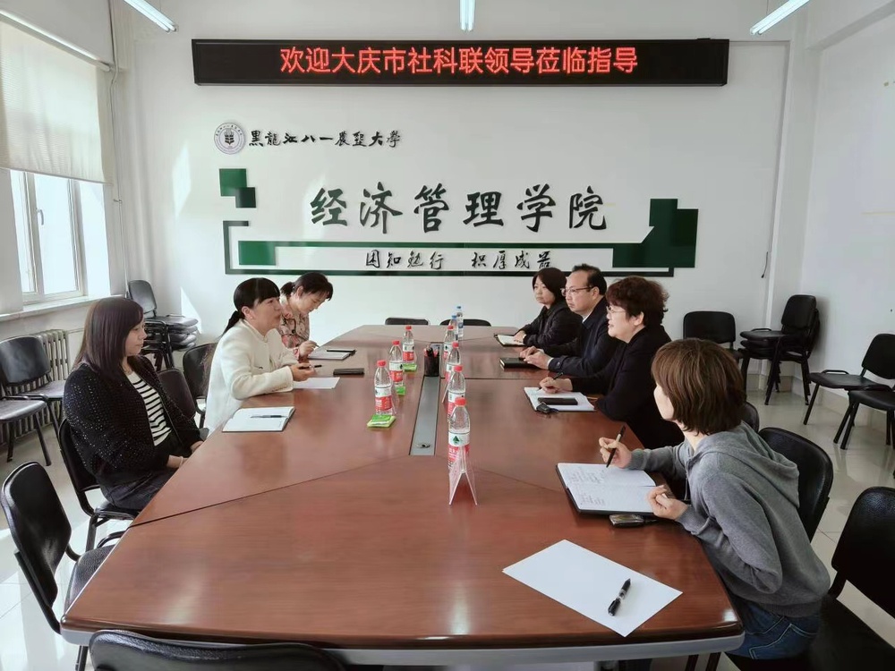 徐素波院长介绍了我院的发展历程及办学特色,提出了我院计划申报大庆市农业经济学会的设想,期望能够得到大庆社科联的支持,共同推进学会的建立。耿晓媛副院长、杨树果老师就学会的申报程序、具体要求等细节与对方进行了深入的探讨。李志有书记表示,学院党委全力支持学会的筹备工作,下一步将在大庆社科联的指导下严谨规范地做好推进工作。