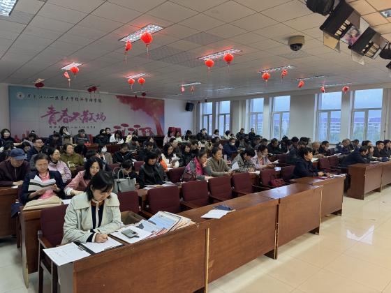 学院党委副书记赵玥解读了《本科教育教学审核评估期间学工系统工作方案》,介绍了学校迎评期间学工系统工作任务,并提出做好审核评估期间的学生教育管理的工作要求。