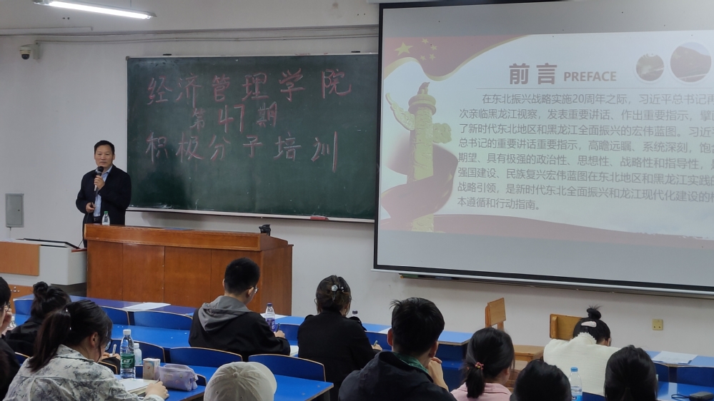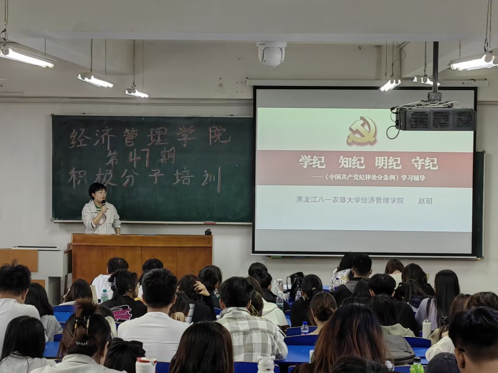 培训班采取课堂讲授与分组讨论相结合、集中教育与个人自学相结合、理论学习与实践研学相结合的形式开展,分别邀请了土木水利学院党委书记王天亮,应用科技学院党委书记姜玉美,校党委组织部组织科科长吴国军,马克思主义学院教师孙红兵、高飞,金沙集团1862cc成色党委书记李志有,金沙集团1862cc成色党委副书记赵玥为学员授课,围绕《<中国共产党章程>解读》《树立正确的入党动机》《坚定理想信念,以实际行动早日加入党组织》《中国共产党简史》《深入学习贯彻习近平总书记重要讲话重要指示精神,奋力开创黑龙江高质量发展新版局》《学习习近平总书记以人民为中心的发展思想 明确当代大学生的使命与担当》《学纪、知纪、明纪、守纪 <中国共产党纪律处分条例>辅导》等专题进行了深入讲解,线上集中观看《榜样8》专题节目,深入学习榜样事迹,引导学员端正入党动机,提升政治素质和理论修养。