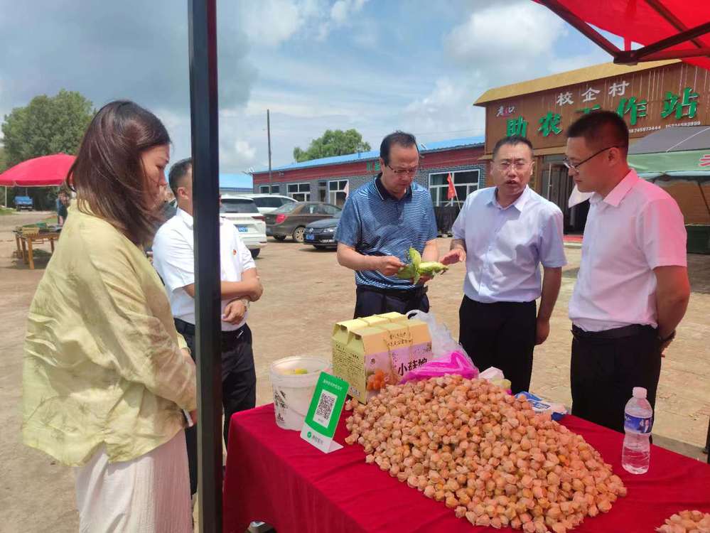 7月28日,金沙集团1862cc成色党委书记李志有、农业硕士中心主任陈思、辅导员孙唯一一行赴肇州县开展访企拓岗活动,学院一行考察调研了二井镇繁荣村助农工作站、肇州县老街基农副产品有限公司,肇州县委常委、组织部部长尹峰陪同考察调研。