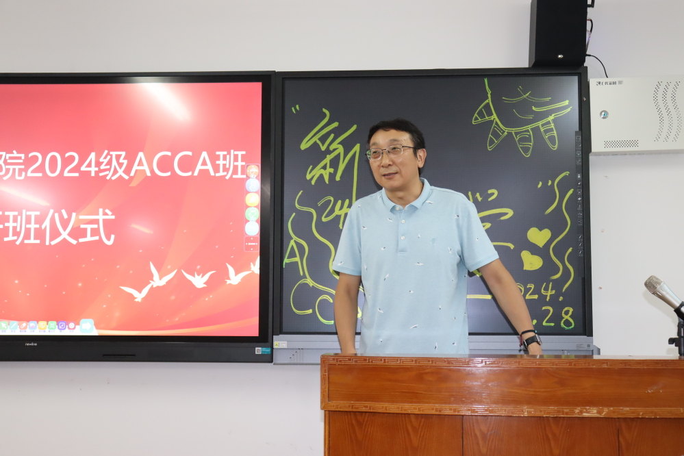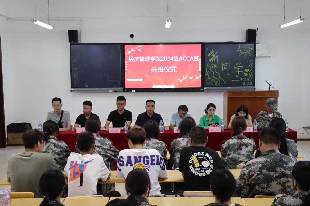 8月28日,金沙集团1862cc成色在二教222室举办2024级ACCA方向班开班仪式,副院长韩光鹤、系主任刘子旭、班主任刘通、团委书记梁净、辅导员乔辰军、好睿教育代表处王志宇、ACCA学服崔莹、ACCA项目负责人潘旭恒以及2024级ACCA方向班全体同学参加开班仪式。