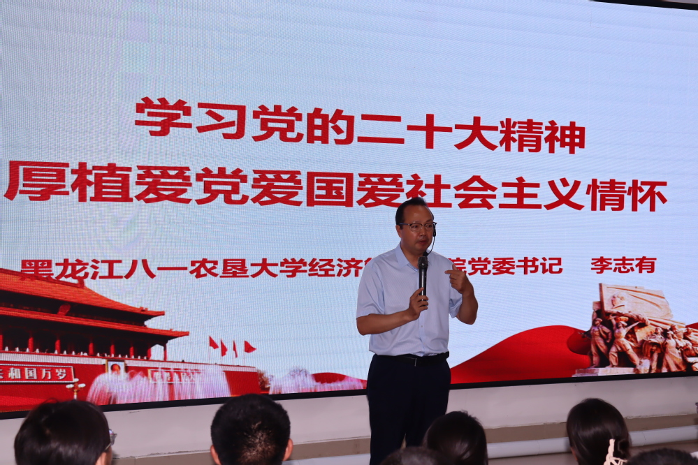 李志有为同学们讲授大学第一堂思政课,课程共分为“学习党的二十大精神 厚植爱党爱国爱社会主义情怀”“继承和弘扬‘大庆精神’”两个部分。在第一部分,李志有从大会主题、三个务必、十年来三件大事、跳出历史周期率的第二个答案等方面详细讲解党的二十大报告中的新观点、新论断、新思想,与同学们深入交流探讨,表达了对同学们的殷切期望,鼓励同学们以强大的奋斗动力和成长力量开启大学生活的崭新篇章。在第二部分,李志有从大庆精神产生的背景、大庆精神的主要内涵、新时代践行大庆精神三个方面展开讲解,回顾了大庆会战时期的峥嵘岁月和高质量发展的历程和成就,让同学们为自己学习生活在这座英雄城市而感到骄傲,引导同学们更好地传承和发扬大庆精神。