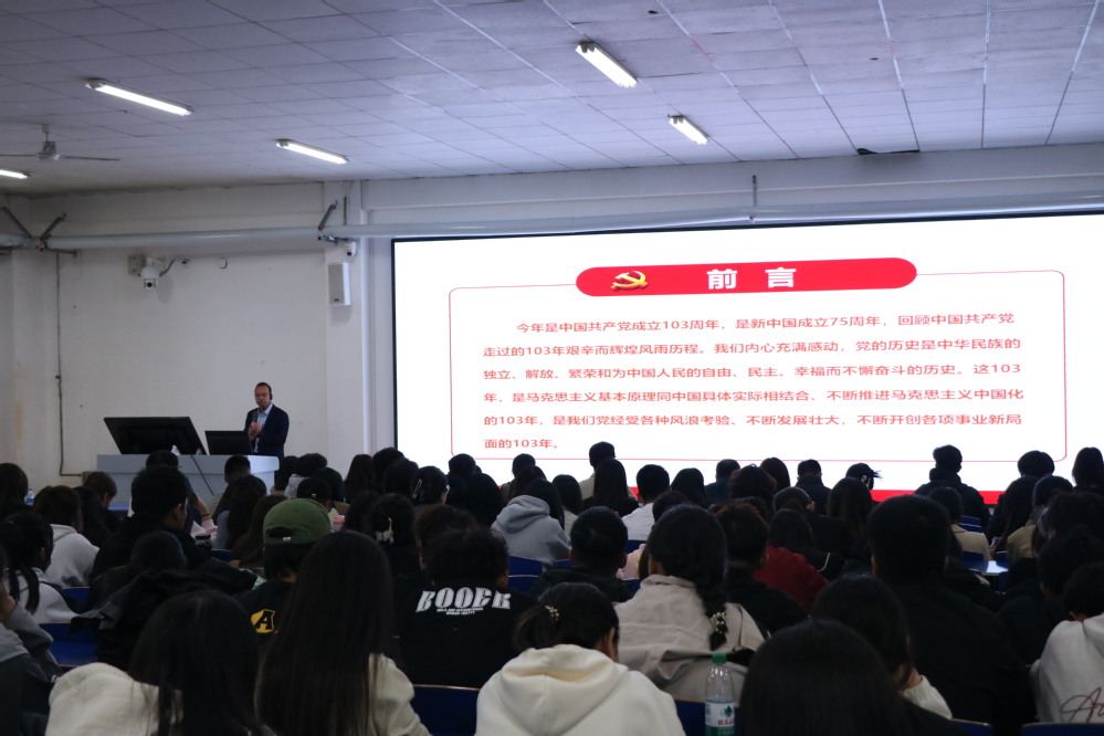 9月24日,学院党委书记李志有在主楼128教室以“中国共产党的光辉历程”为题为全体党员讲授专题党课。李志有梳理了党史上的重要时间节点及重大历史事件,通过引用丰富的史料、详实的数据和鲜活的事例生动展现了党在不同历史时期的奋斗历程和伟大成就,回顾了新中国成立75周年取得的发展成就和奋进轨迹。