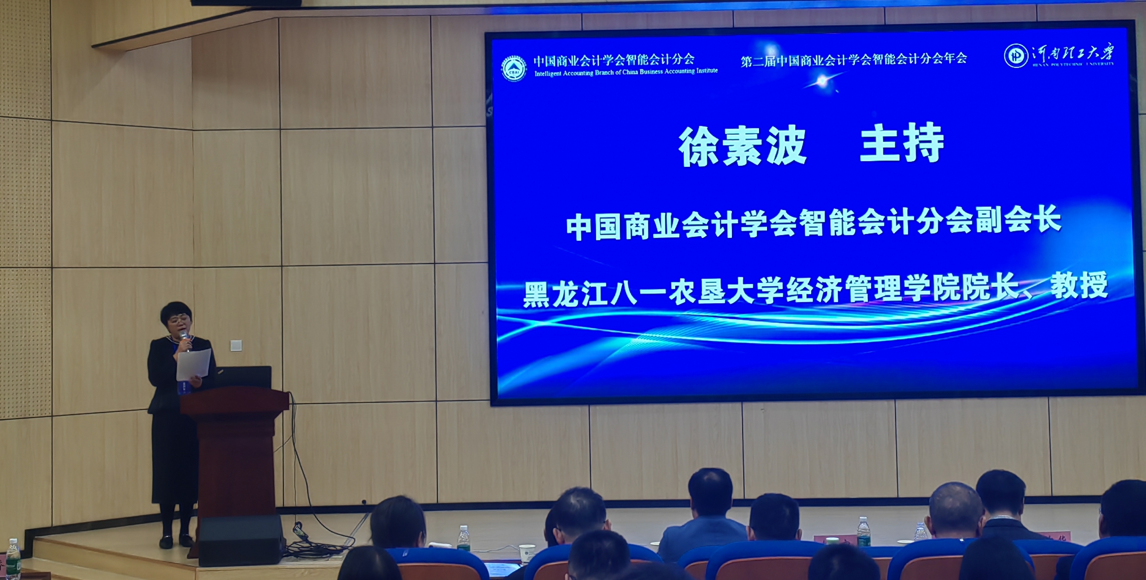 主题报告(二)由中国商业会计学会智能分会副会长徐素波主持,徐素波对本次会议主办方表示感谢,并对智能会计发展和方向提出展望,最后诚挚邀请高校及实务界专家到黑龙江八一农垦大学交流访谈。