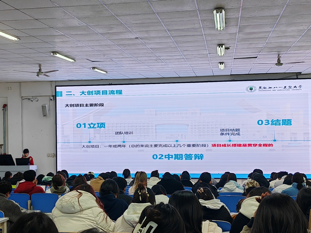 2022级学生黄佳慧作为分享人,结合自身丰富的参赛经验,从大创及科创竞赛介绍、大创项目申报与结题流程、创业赛事备赛资料、科创活动中的体验和收获四个角度展开分享,详细介绍参赛项目搭建过程和路演答辩技巧,并就路演PPT的总体框架、内容构成、制作准则等方面向同学们分享个人见解和建议。