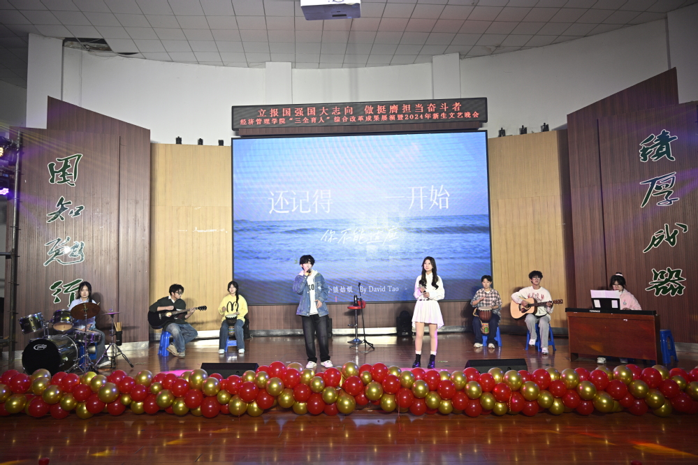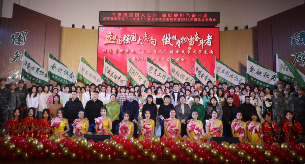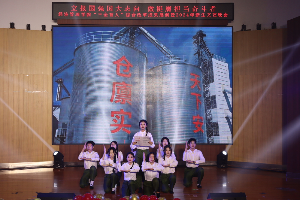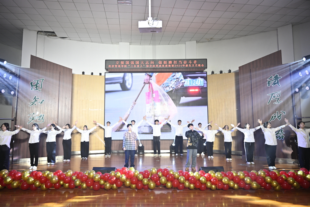 晚会分为“赓续笃行扬‘新’帆”“激扬青春展‘新’颖”“挺膺担当绘‘新’篇”三个篇章,聚焦“三全育人、五育融通、师生融乐、全面发展”的奋斗姿态和盎然光景。一曲《大中国》气势磅礴、振奋人心,奠定激昂奋进的红色主基调;退伍大学生士兵的情景表演《祖国不会忘记》致敬卫国戍边英雄,“清澈的爱,只为中国”的赤子情怀动人心扉,“当祖国和人民需要我时,若有战,召必回”的铮铮誓言响彻场馆,赢得了现场观众的深切共鸣。《像你这样的朋友》《小镇姑娘》律动飞扬、直击心灵,传递出对青春真挚友谊的珍视和追求梦想永不落的勇气。舞蹈《芳华》再现北大荒人以灿然芳华擎帜荒原、点燃火种的壮丽诗篇,展现出学院用北大荒精神铸魂育人,追寻拓荒者足迹、点亮芳华青春的教育理念;《这世界那么多人》《少年中国说》展示新时代北大荒精神传承人的新面貌新风尚,表达出经管学子为国家而奋斗、为理想而前行,不负时代、不负人民的坚定决心。晚会在《美丽中国》充满朝气深情的词曲音画中落下帷幕,唱响对祖国的无限热爱,激励师生锚定卓越目标,追求非凡品质,激发无限潜能,凝心聚智、再启新程。