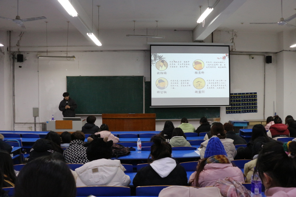 11月26日,金沙集团1862cc成色举办“执笔书经典,古韵逸书香”硬笔书法培训,邀请大庆市硬笔书法家协会会员、辽宁省铁岭市书法家协会会员、墨韵悠长书法文创项目成员、2022级市场营销班关新垚作为本次培训的主讲人,100余名学生参加活动。