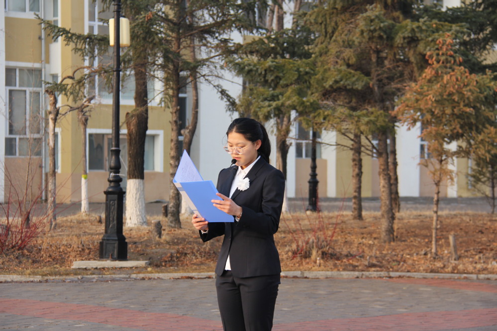 活动在嘹亮的国歌声中拉开序幕,全体师生整齐列队于王震将军像前。学生代表胡雨昕面向在场师生宣讲北大荒精神、校史校情相关故事,深情回顾王震将军率十万复转官兵开发建设北大荒的峥嵘岁月,带领师生深刻感悟以自力更生、艰苦创业、勇于开拓、甘于奉献为内涵的北大荒精神,深切体会黑土地上传承不息的精神力量。