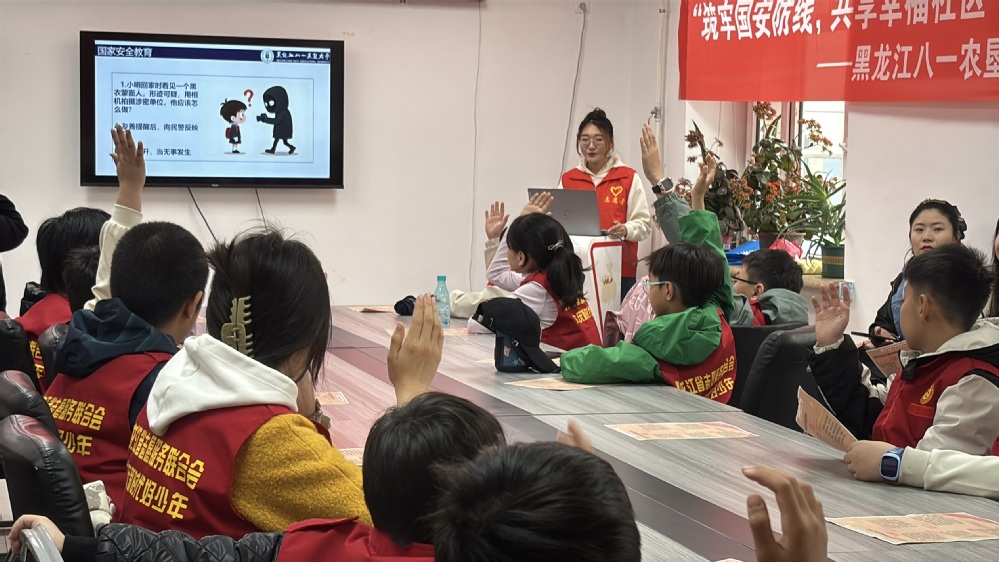 志愿者以PPT讲解的形式绘声绘色地向社区儿童科普国家安全教育知识,现场的小“红领巾”们积极举手参与互动、回答问题,加深对国家安全的认识和理解。讲解后,志愿者以“大手拉小手”的形式与小“红领巾”们一同走进社区,发放宣传单,向社区居民普及国家安全知识,增强社区居民的国家安全意识,帮助居民提高识别能力,掌握防范措施,积极营造“国家安全,人人有责”的浓厚氛围。